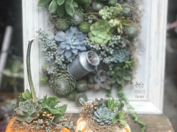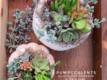 Don't you think these pumpcculents (succulent-pumpkins) are the cutest fall decor?!? Make your own or get it ready-made, we have it available for you! We can also customize it.